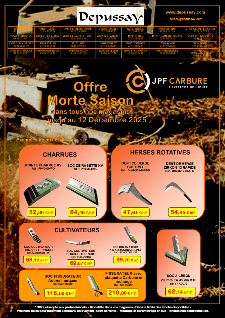 Pièces De nombreuses promotions dans nos magasins en ce moment : L’OFFRE FLASH FENAISON – Destockage Film, Filet & Ficelle LA SELECTION DE NOEL LES OFFRES MORTE SAISON LES INDISPENSABLES L’OFFRE LUBRIFIANTS LA BOULONNERIE CAMPA J’aime chargement…